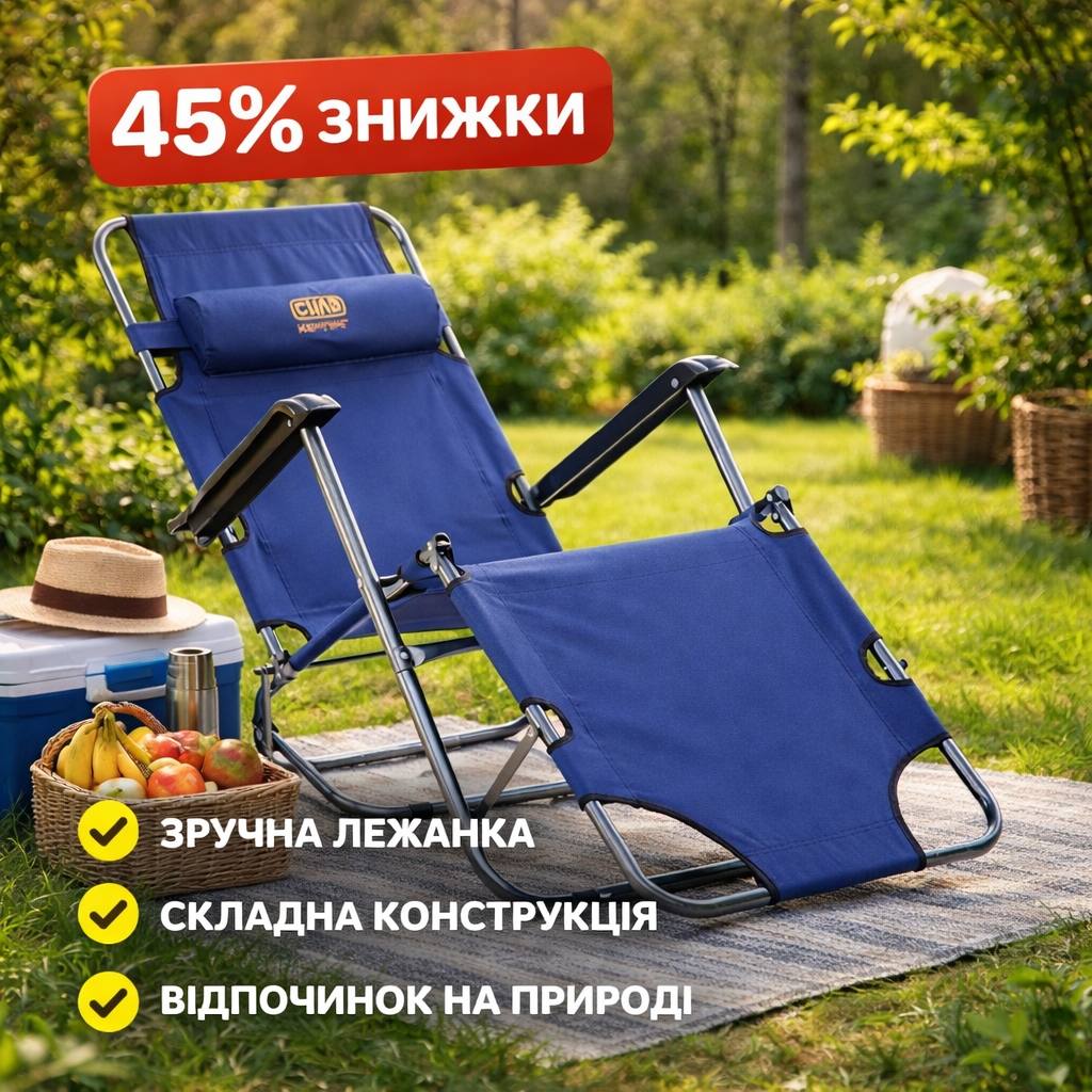 Комфортний відпочинок більше не залежить від місця чи обставин. Складний шезлонг з підніжкою забезпечує правильну підтримку спини та ніг, допомагаючи тілу повністю розслабитися після активного дня.